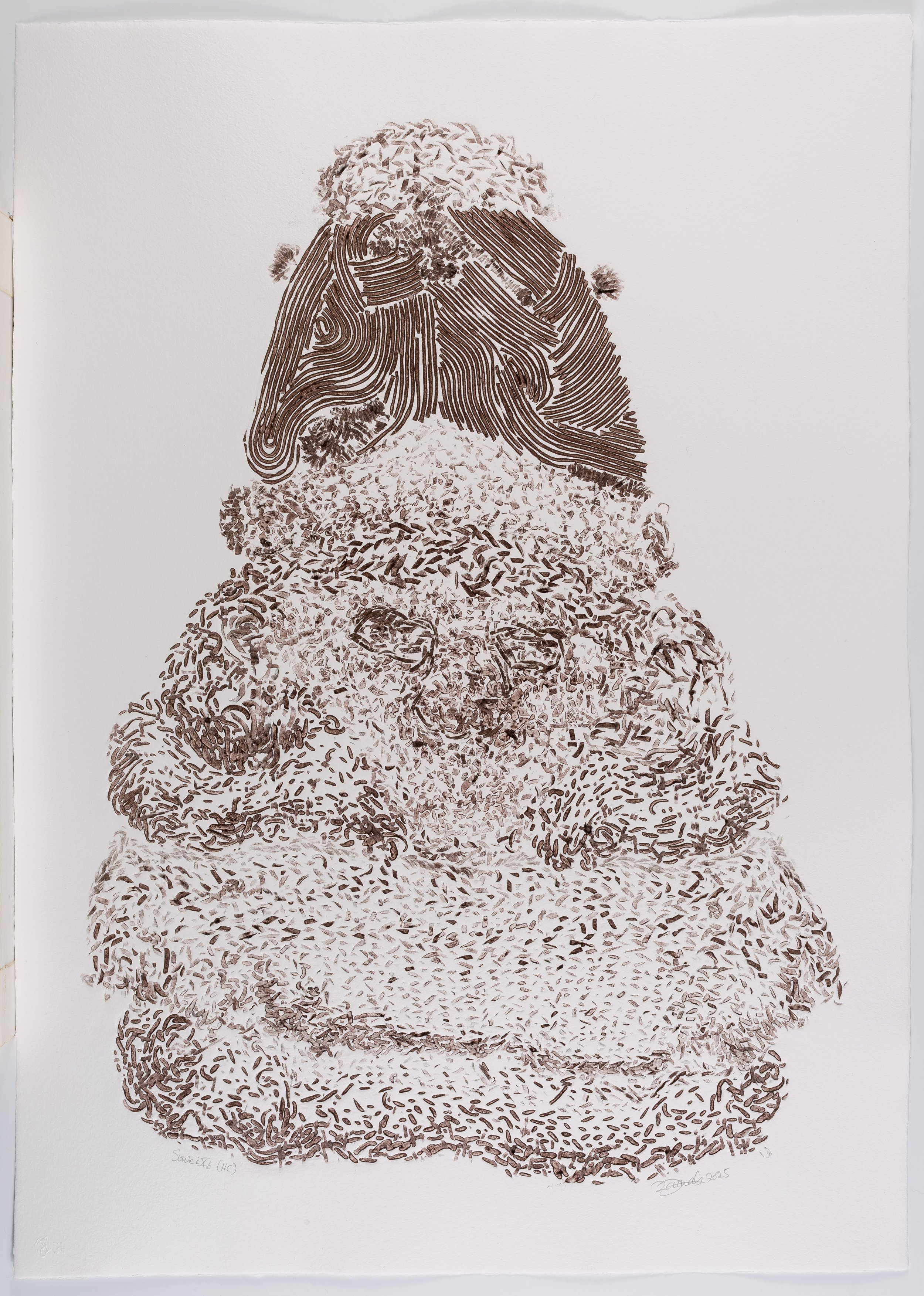 monotype printed in brown/black