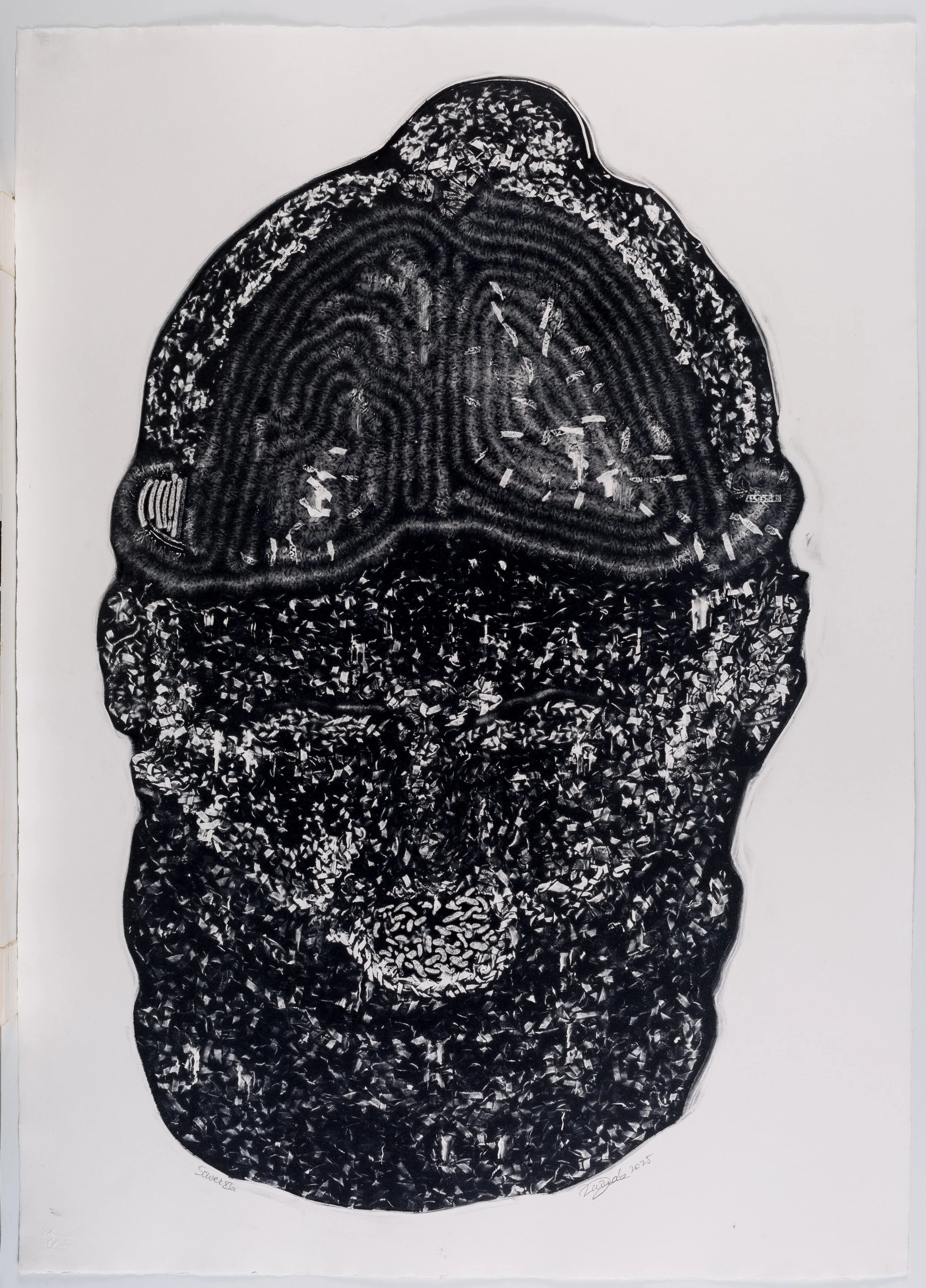 Gnawa is a continuing exploration rooted in the ritual music and spiritual lineage of Gnawa culture, translating rhythm, repetition, and collective memory across paintings, sculptures, and textiles through gesture, structure, and material weight.